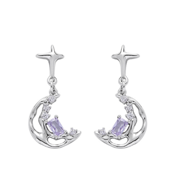 Questi orecchini pendenti catturano l’eleganza celeste con un design ispirato alla luna e alle stelle. Le forme delicate e sinuose creano un equilibrio perfetto tra modernità e raffinatezza, mentre le pietre luminose donano profondità e fascino a ogni movimento.