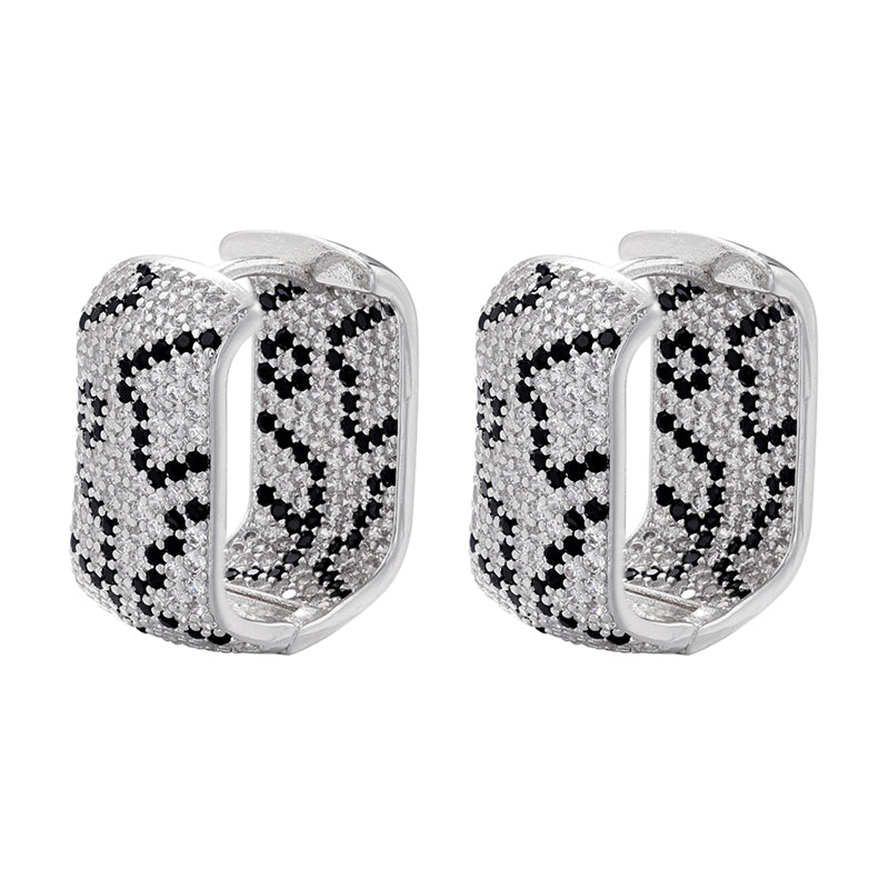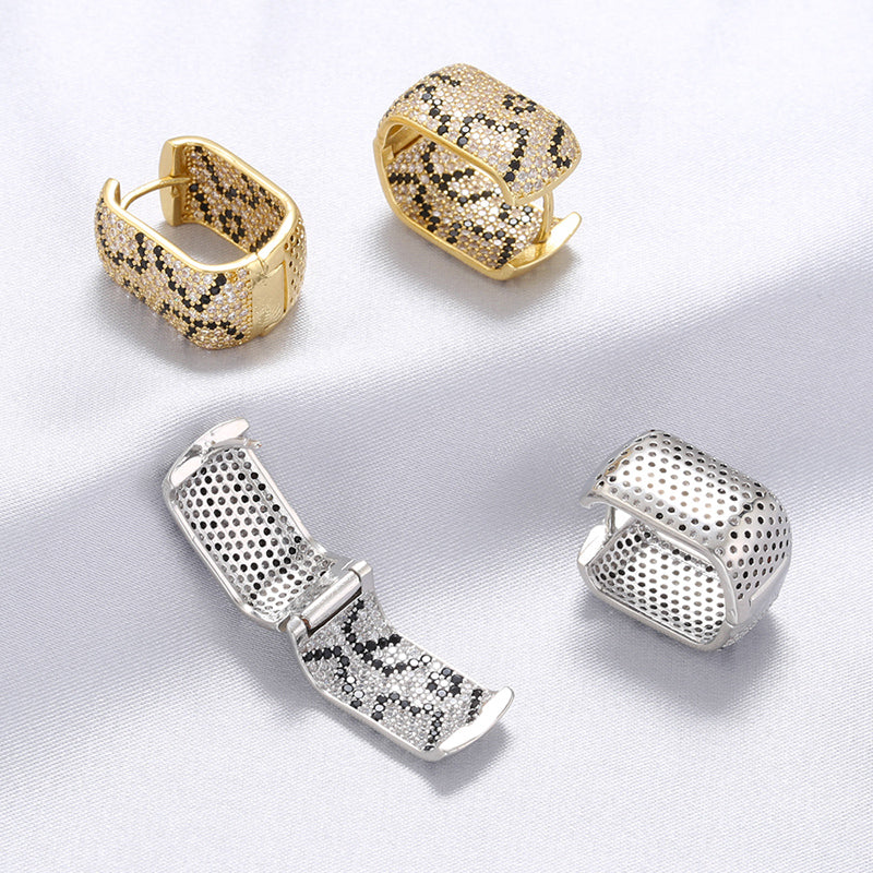 Design deciso e geometrie audaci definiscono questi orecchini dalla forma quadrata e moderna. Le superfici ornate da piccoli dettagli luminosi creano un motivo dinamico e raffinato, ispirato all’eleganza sinuosa del mondo naturale. Un gioiello dal forte carattere estetico, pensato per chi desidera distinguersi con stile.