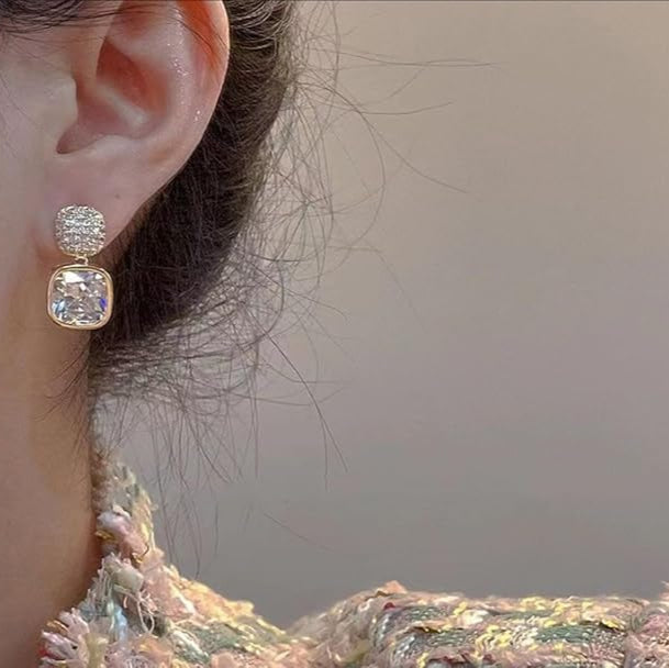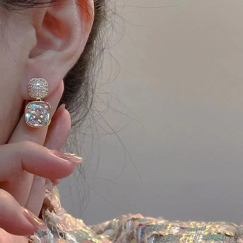Questi orecchini si distinguono per la loro eleganza senza tempo e il taglio brillante dei cristalli, che catturano la luce da ogni angolazione. Il design a doppio cubo crea un perfetto equilibrio tra classicità e modernità, rendendoli ideali per completare un look sofisticato o per valorizzare un outfit minimalista.