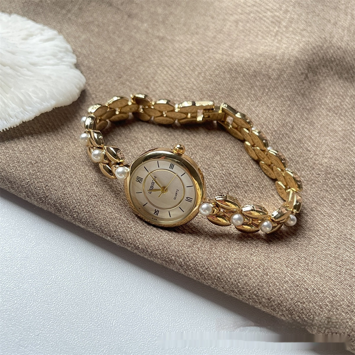 Orologio Da Donna Con Cinturino In Metallo E Perle Cassa Rotonda Piccola Quadrante Con Numeri Romani