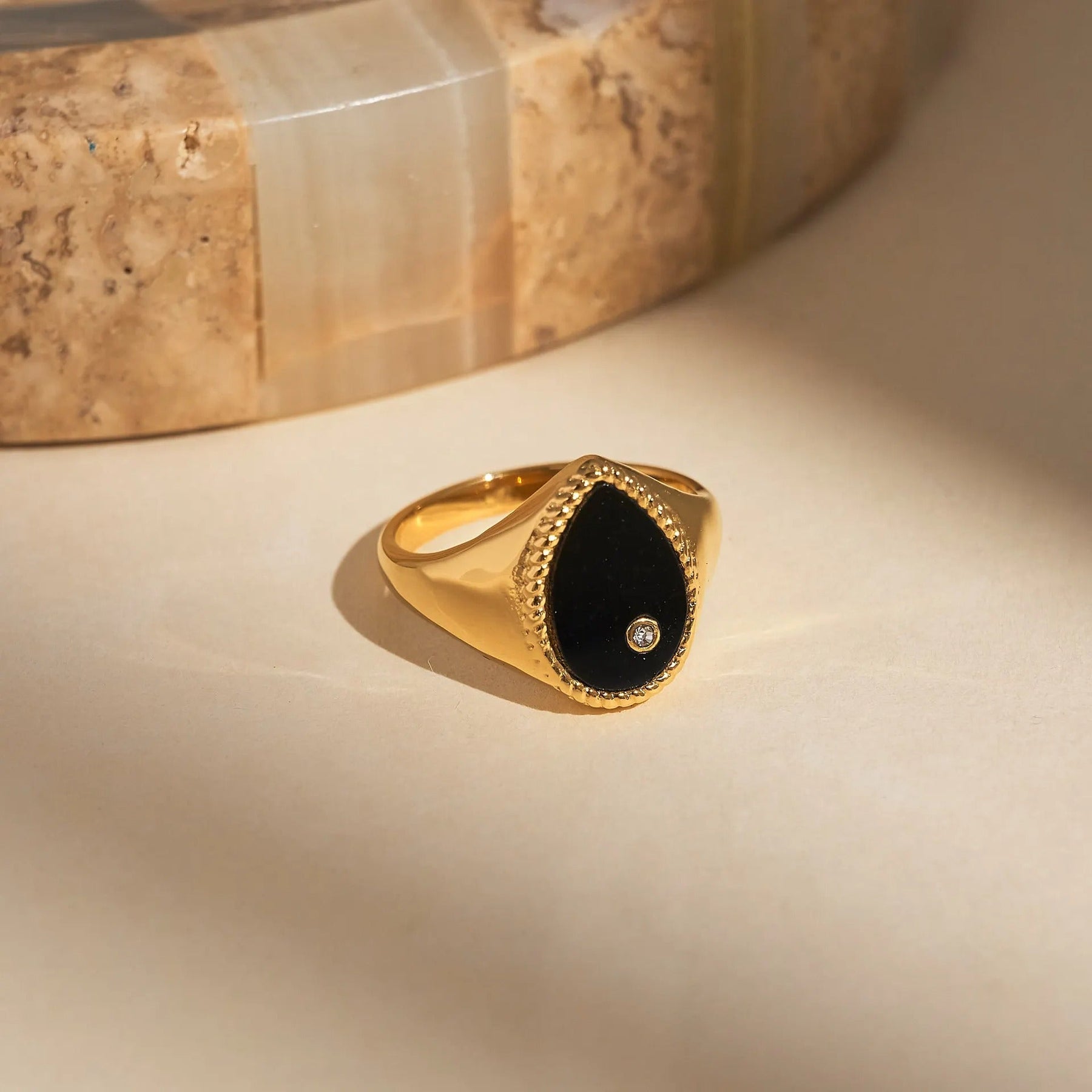 Questo anello presenta un design raffinato e distintivo, caratterizzato da una forma a goccia che cattura immediatamente l’attenzione. Le linee eleganti e la superficie liscia conferiscono un’equilibrata armonia tra modernità e classicismo, rendendolo un accessorio versatile adatto a ogni stile e occasione.
