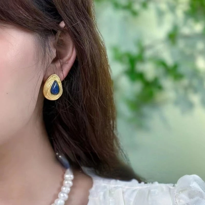 Un design raffinato e armonioso definisce questi orecchini dalla forma a goccia. Le linee concentriche incise sulla superficie creano un effetto tridimensionale che mette in risalto la pietra centrale, donando profondità e carattere al gioiello. Un accessorio elegante che combina tradizione e modernità in un’unica creazione di stile.