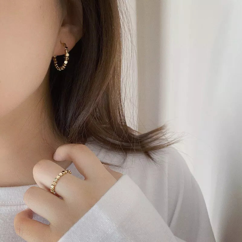 Questi orecchini uniscono eleganza e movimento grazie alla loro forma composta da piccoli cerchi riflettenti. Il design luminoso crea un effetto delicato ma deciso, perfetto per aggiungere un tocco di raffinatezza moderna a ogni look. Ideali per chi cerca un accessorio versatile, capace di fondere minimalismo e fascino contemporaneo.