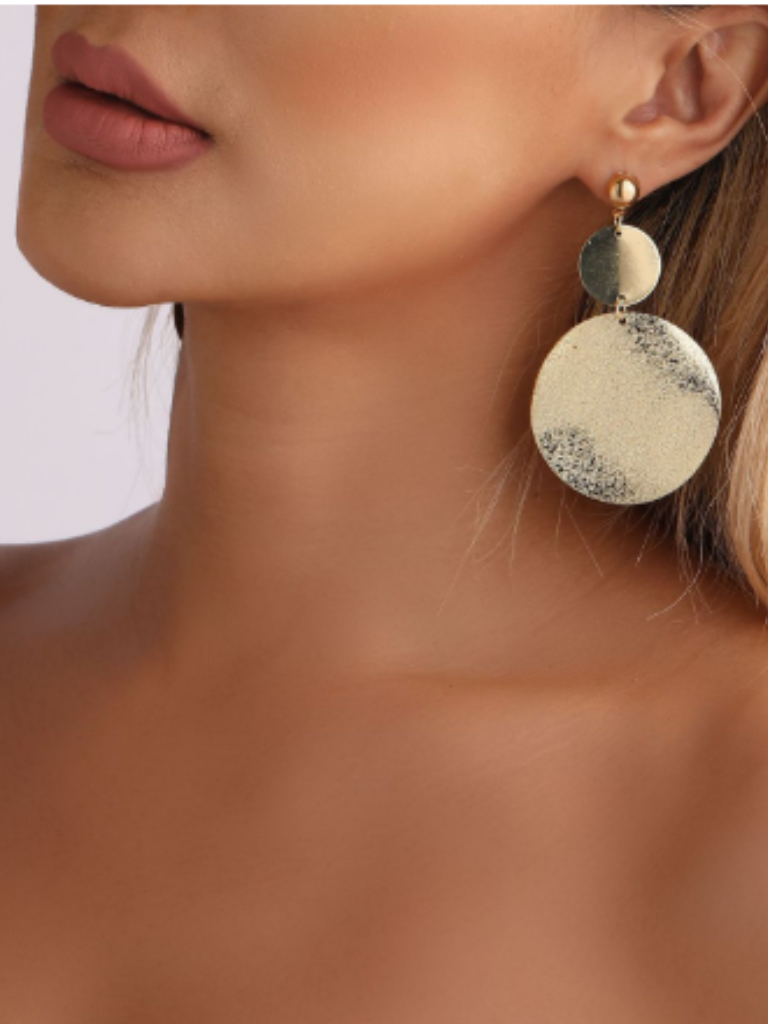 Questi orecchini da donna si distinguono per il loro design geometrico e lineare, composto da eleganti dischi pendenti che creano un movimento armonioso e luminoso. Le superfici satinate donano un effetto raffinato e moderno, perfetto per completare look contemporanei con un tocco di equilibrio e sobrietà.